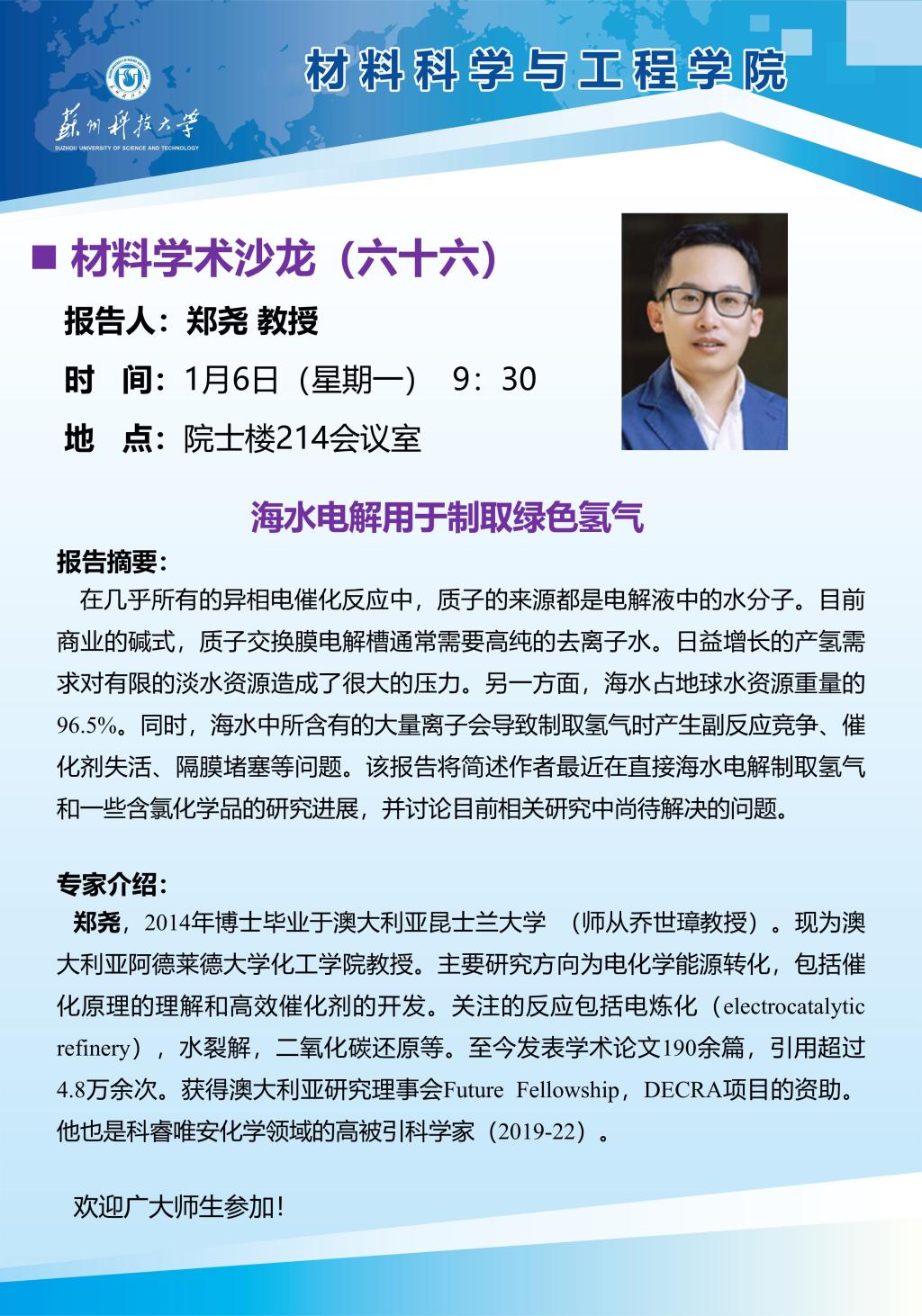 我院沙龙六十六:海水电解用于制取绿色氢气