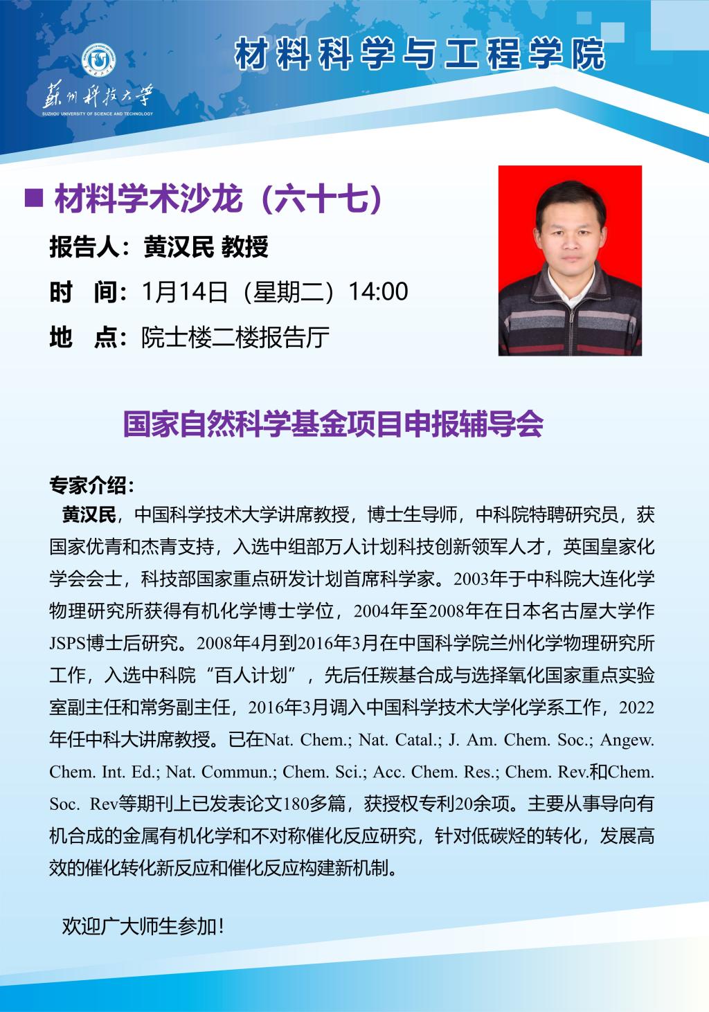 我院沙龙六十七:国家自然科学基金项目申报辅导会
